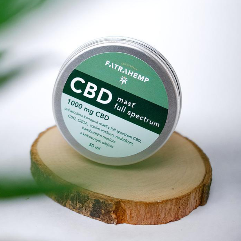 Univerzálna konopná CBD masť FORTE s vysokým obsahom CBD, nechtíkom a tymianom. Balenie 50 ml obsahuje 1000mg CBD full spectrum.